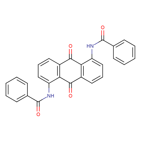 Benzamide, N,N’-(9,10-dihydro-9,10-dioxo-1,5-anthracenediyl)bis- can be analyzed by this reverse phase (RP) HPLC method with simple conditions. The mobile phase contains an acetonitrile (MeCN), water, and phosphoric acid. For Mass-Spec (MS) compatible applications the phosphoric acid needs to be replaced with formic acid. Smaller 3 µm particles columns available for fast UPLC applications. This liquid chromatography method is scalable and can be used for isolation impurities in preparative separation. It also suitable for pharmacokinetics.