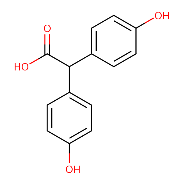 Benzeneacetic acid, 4-hydroxy-.alpha.-(4-hydroxyphenyl)- can be analyzed by this reverse phase (RP) HPLC method with simple conditions. The mobile phase contains an acetonitrile (MeCN), water, and phosphoric acid. For Mass-Spec (MS) compatible applications the phosphoric acid needs to be replaced with formic acid. Smaller 3 µm particles columns available for fast UPLC applications. This liquid chromatography method is scalable and can be used for isolation impurities in preparative separation. It also suitable for pharmacokinetics.