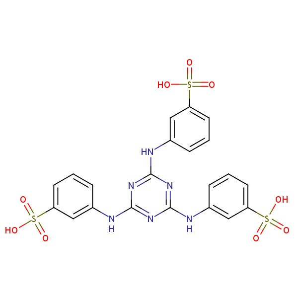 Benzenesulfonic acid, 3,3’,3’’-(1,3,5-triazine-2,4,6-triyltriimino)tris- can be analyzed by this reverse phase (RP) HPLC method with simple conditions. The mobile phase contains an acetonitrile (MeCN), water, and phosphoric acid. For Mass-Spec (MS) compatible applications the phosphoric acid needs to be replaced with formic acid. Smaller 3 µm particles columns available for fast UPLC applications. This liquid chromatography method is scalable and can be used for isolation impurities in preparative separation. It also suitable for pharmacokinetics.
