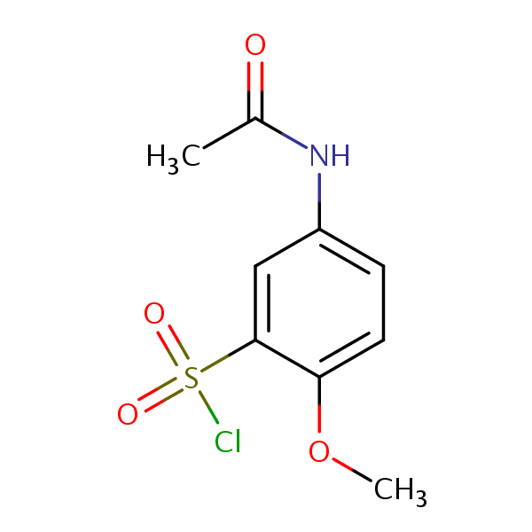 Benzenesulfonyl chloride, 5-(acetylamino)-2-methoxy- can be analyzed by this reverse phase (RP) HPLC method with simple conditions. The mobile phase contains an acetonitrile (MeCN), water, and phosphoric acid. For Mass-Spec (MS) compatible applications the phosphoric acid needs to be replaced with formic acid. Smaller 3 µm particles columns available for fast UPLC applications. This liquid chromatography method is scalable and can be used for isolation impurities in preparative separation. It also suitable for pharmacokinetics.