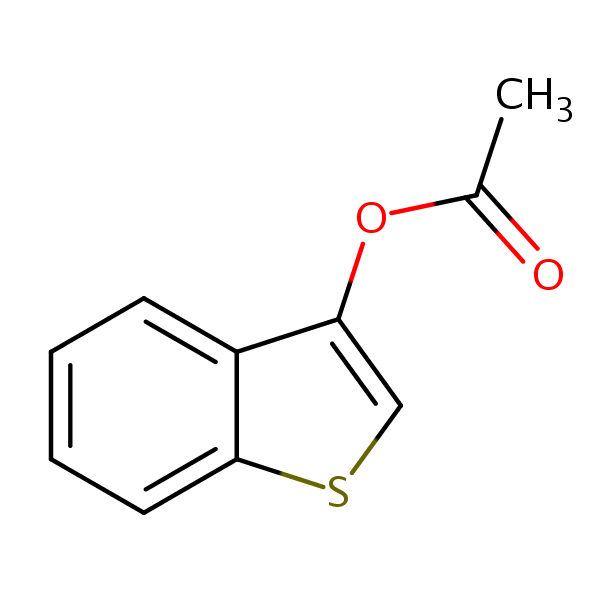 Benzo(b)thiophen-3-yl acetate can be analyzed by this reverse phase (RP) HPLC method with simple conditions. The mobile phase contains an acetonitrile (MeCN), water, and phosphoric acid. For Mass-Spec (MS) compatible applications the phosphoric acid needs to be replaced with formic acid. Smaller 3 µm particles columns available for fast UPLC applications. This liquid chromatography method is scalable and can be used for isolation impurities in preparative separation. It also suitable for pharmacokinetics.