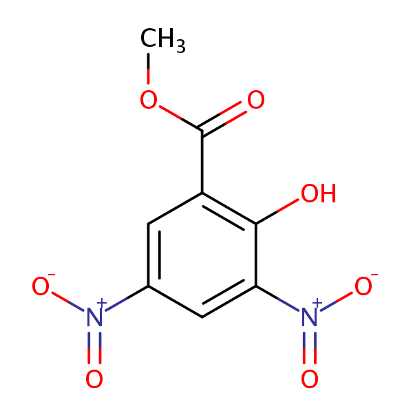 Benzoic acid, 2-hydroxy-3,5-dinitro-, methyl ester can be analyzed by this reverse phase (RP) HPLC method with simple conditions. The mobile phase contains an acetonitrile (MeCN), water, and phosphoric acid. For Mass-Spec (MS) compatible applications the phosphoric acid needs to be replaced with formic acid. Smaller 3 µm particles columns available for fast UPLC applications. This liquid chromatography method is scalable and can be used for isolation impurities in preparative separation. It also suitable for pharmacokinetics.