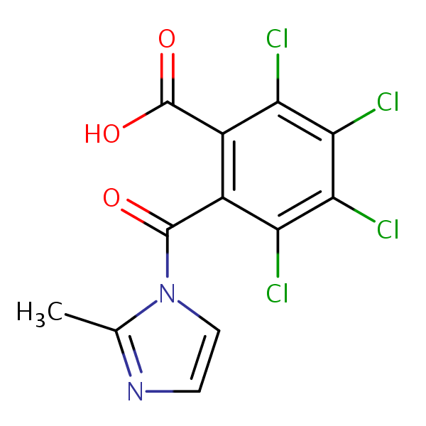 Benzoic acid, 2,3,4,5-tetrachloro-6-[(2-methyl-1H-imidazol-1-yl)carbonyl]- can be analyzed by this reverse phase (RP) HPLC method with simple conditions. The mobile phase contains an acetonitrile (MeCN), water, and phosphoric acid. For Mass-Spec (MS) compatible applications the phosphoric acid needs to be replaced with formic acid. Smaller 3 µm particles columns available for fast UPLC applications. This liquid chromatography method is scalable and can be used for isolation impurities in preparative separation. It also suitable for pharmacokinetics.