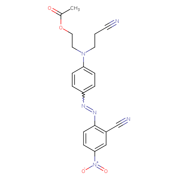 Benzonitrile, 2-[[4-[[2-(acetyloxy)ethyl](2-cyanoethyl)amino]phenyl]azo]-5-nitro- can be analyzed by this reverse phase (RP) HPLC method with simple conditions. The mobile phase contains an acetonitrile (MeCN), water, and phosphoric acid. For Mass-Spec (MS) compatible applications the phosphoric acid needs to be replaced with formic acid. Smaller 3 µm particles columns available for fast UPLC applications. This liquid chromatography method is scalable and can be used for isolation impurities in preparative separation. It also suitable for pharmacokinetics.
