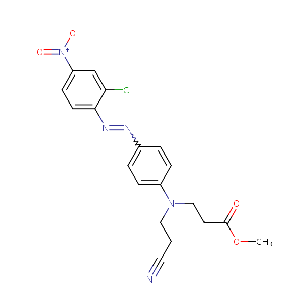 .beta.-Alanine, N-[4-[(2-chloro-4-nitrophenyl)azo]phenyl]-N-(2-cyanoethyl)-, methyl ester can be analyzed by this reverse phase (RP) HPLC method with simple conditions. The mobile phase contains an acetonitrile (MeCN), water, and phosphoric acid. For Mass-Spec (MS) compatible applications the phosphoric acid needs to be replaced with formic acid. Smaller 3 µm particles columns available for fast UPLC applications. This liquid chromatography method is scalable and can be used for isolation impurities in preparative separation. It also suitable for pharmacokinetics.