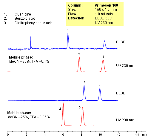 HPLC Separation of Guanidine and Benzoic Acids on Primesep 100 Column