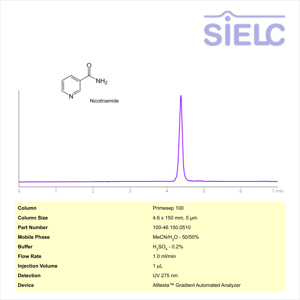 HPLC Method for Analysis of Nicotinamide on Primesep 100 Column on Alltesta™