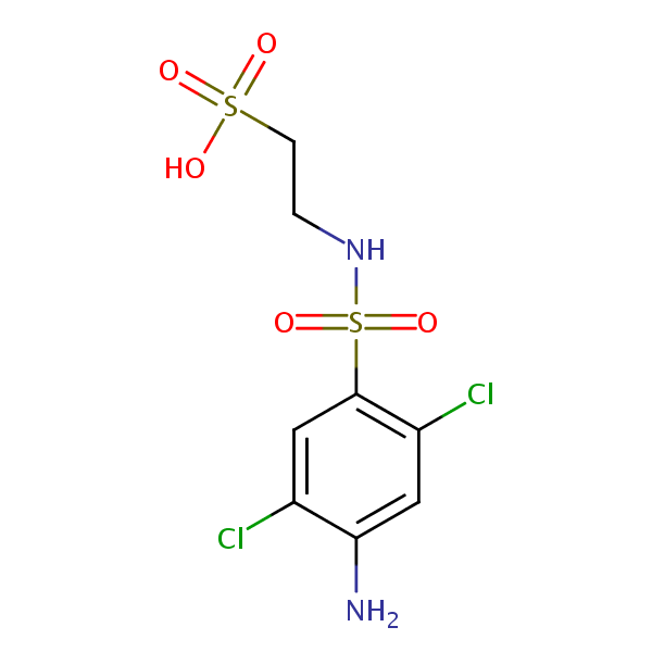Ethanesulfonic acid, 2-[[(4-amino-2,5-dichlorophenyl)sulfonyl]amino]- can be analyzed by this reverse phase (RP) HPLC method with simple conditions. The mobile phase contains an acetonitrile (MeCN), water, and phosphoric acid. For Mass-Spec (MS) compatible applications the phosphoric acid needs to be replaced with formic acid. Smaller 3 µm particles columns available for fast UPLC applications. This liquid chromatography method is scalable and can be used for isolation impurities in preparative separation. It also suitable for pharmacokinetics.