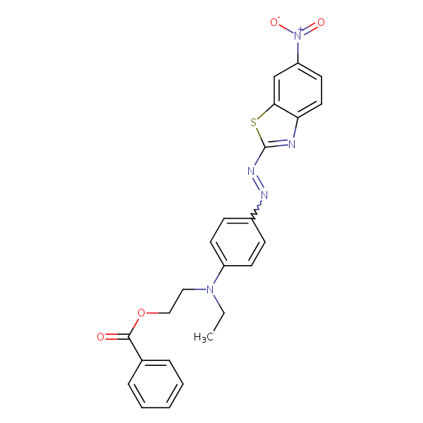 Select options![Ethanol, 2-[ethyl[4-[(6-nitro-2-benzothiazolyl)azo]phenyl]amino]-, benzoate (ester) structural formula](http://www.sielc.com/wp-content/uploads/compounds/Ethanol-2-ethyl4-6-nitro-2-benzothiazolylazophenylamino-benzoate-ester.png)