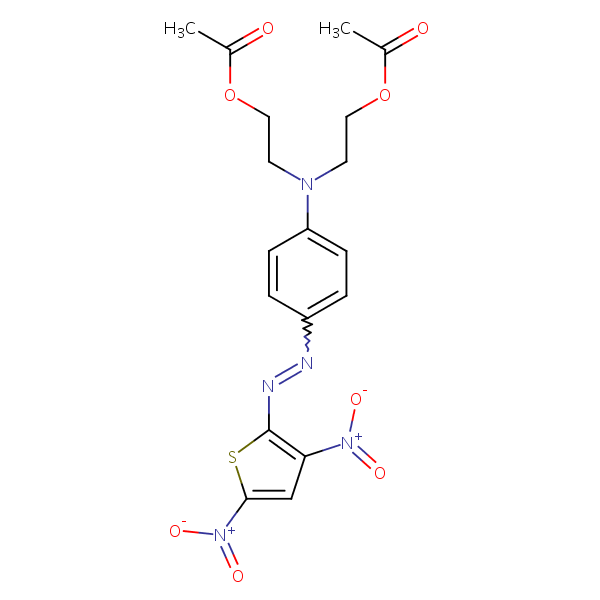 Select options![Ethanol, 2,2’-[[4-[(3,5-dinitro-2-thienyl)azo]phenyl]imino]bis-, diacetate (ester) structural formula](http://www.sielc.com/wp-content/uploads/compounds/Ethanol-22-4-35-dinitro-2-thienylazophenyliminobis-diacetate-ester.png)