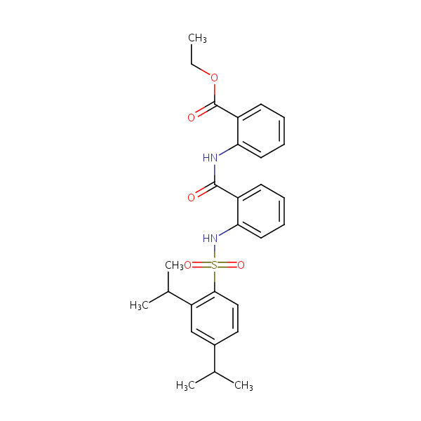 Ethyl N-((2-(2,4-diisopropylbenzenesulphonylamino))benzoyl)anthranilate can be analyzed by this reverse phase (RP) HPLC method with simple conditions. The mobile phase contains an acetonitrile (MeCN), water, and phosphoric acid. For Mass-Spec (MS) compatible applications the phosphoric acid needs to be replaced with formic acid. Smaller 3 µm particles columns available for fast UPLC applications. This liquid chromatography method is scalable and can be used for isolation impurities in preparative separation. It also suitable for pharmacokinetics.