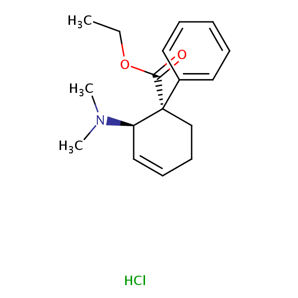 Ethyl trans-(+)-2-(dimethylamino)-1-phenylcyclohex-3-ene-1-carboxylate hydrochloride can be analyzed by this reverse phase (RP) HPLC method with simple conditions. The mobile phase contains an acetonitrile (MeCN), water, and phosphoric acid. For Mass-Spec (MS) compatible applications the phosphoric acid needs to be replaced with formic acid. Smaller 3 µm particles columns available for fast UPLC applications. This liquid chromatography method is scalable and can be used for isolation impurities in preparative separation. It also suitable for pharmacokinetics.