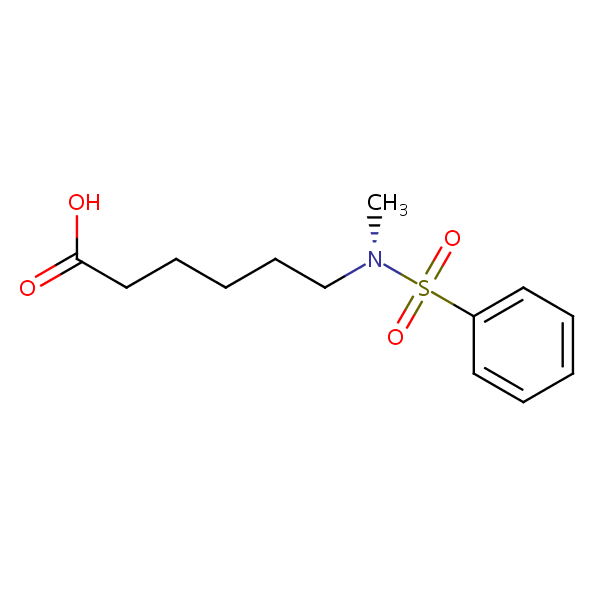 Hexanoic acid, 6-[methyl(phenylsulfonyl)amino]- can be analyzed by this reverse phase (RP) HPLC method with simple conditions. The mobile phase contains an acetonitrile (MeCN), water, and phosphoric acid. For Mass-Spec (MS) compatible applications the phosphoric acid needs to be replaced with formic acid. Smaller 3 µm particles columns available for fast UPLC applications. This liquid chromatography method is scalable and can be used for isolation impurities in preparative separation. It also suitable for pharmacokinetics.