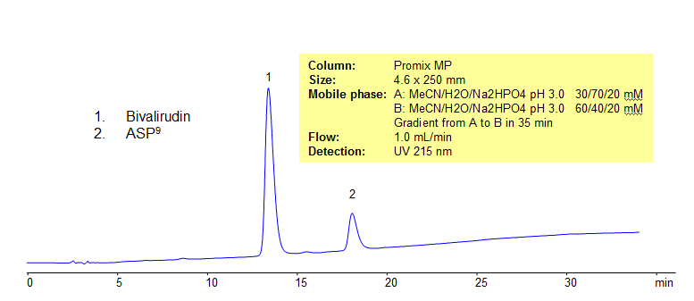 Bivalirudin is a short 21 amino acids peptide. It has 2 basic and 6 acidic groups. It is a naturally occurred an anticoagulant. Asp9 – bivalirudin is a process impurity and can be a result of degradation of bivalirudin drug.