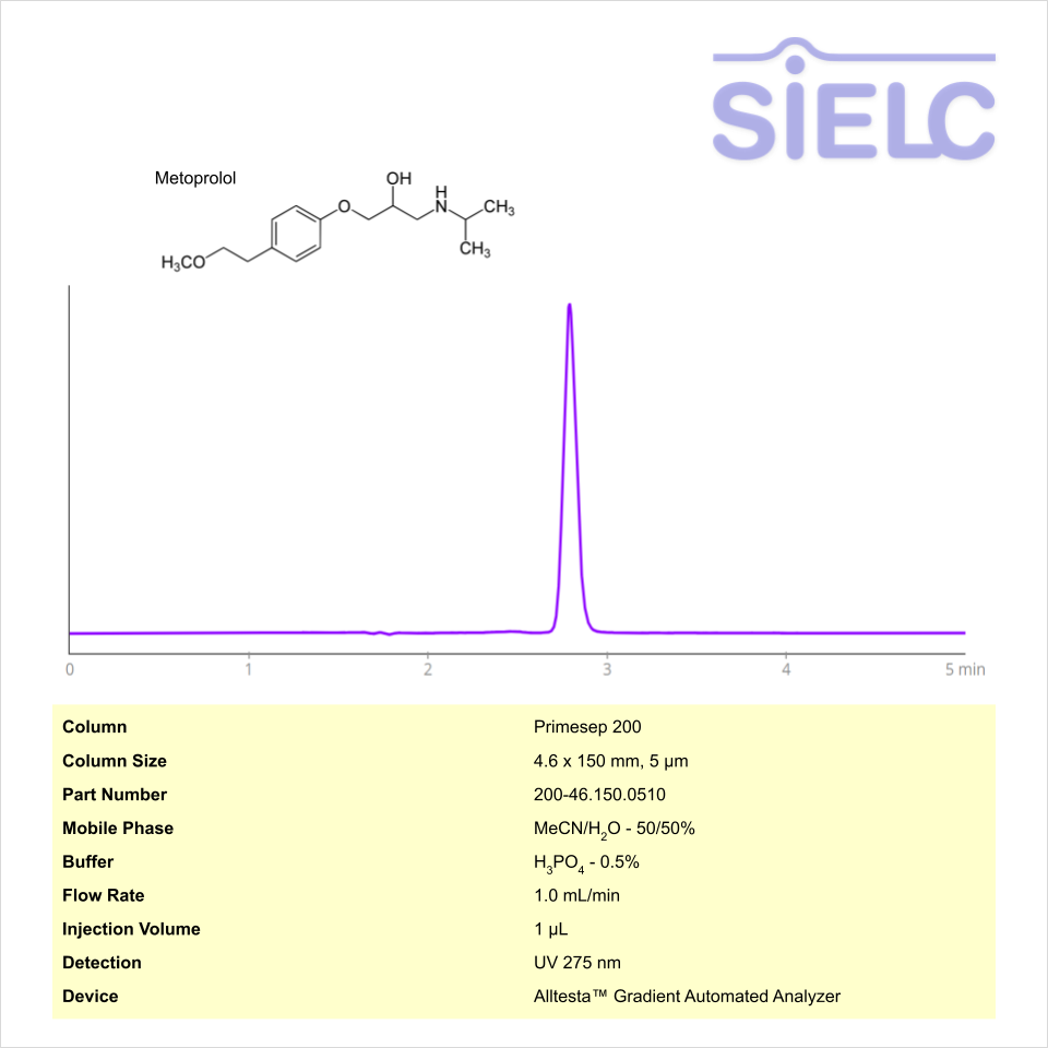 HPLC Method for Metoprolol on Primesep 200 by SIELC Technologies