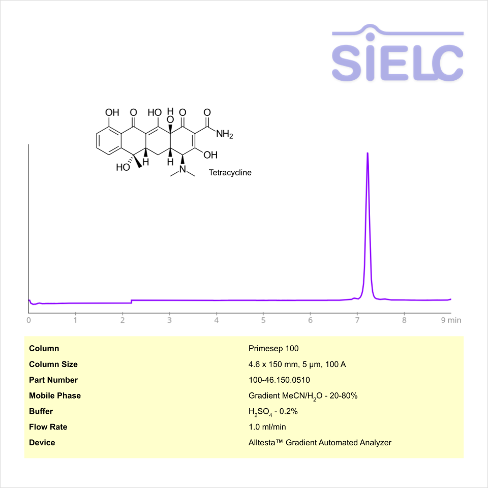 HPLC Method for Analysis of Tetracycline on Primesep 100 Column on Alltesta™