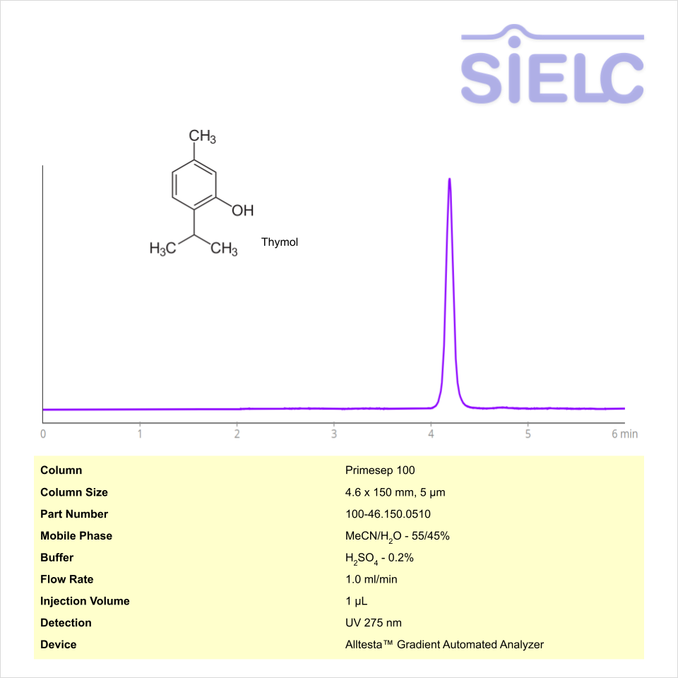 HPLC Method for Thymol on Primesep 100 by SIELC Technologies