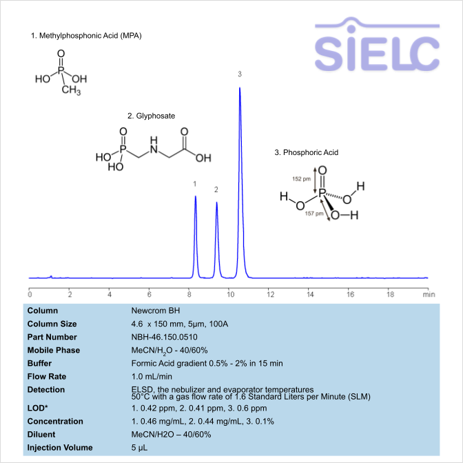 HPLC–ELSD Method for the Analysis of Methylphosphonic Acid, Glyphosate, and Phosphoric Acid Using a Newcrom BH Column