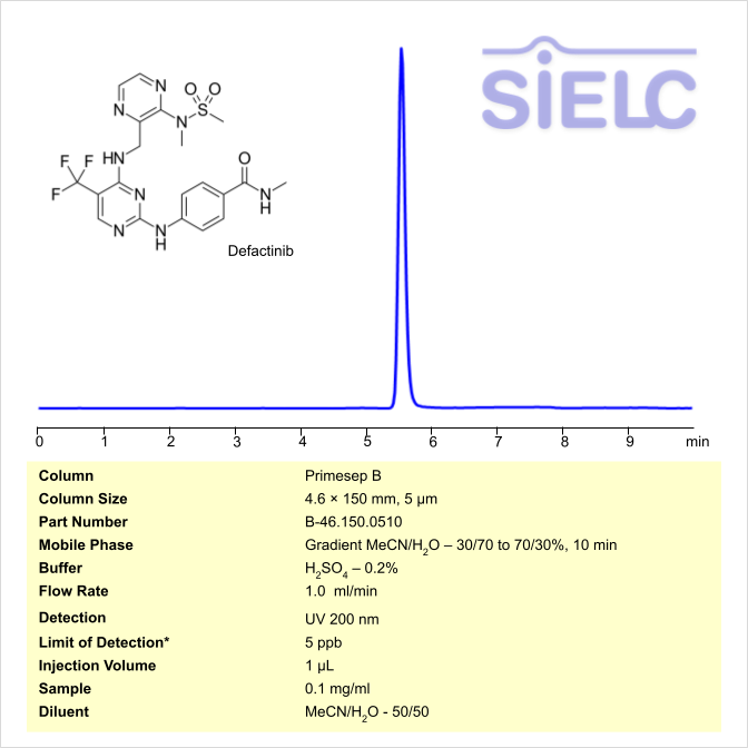 HPLC Method for Defactinib on Primesep B by SIELC Technologies