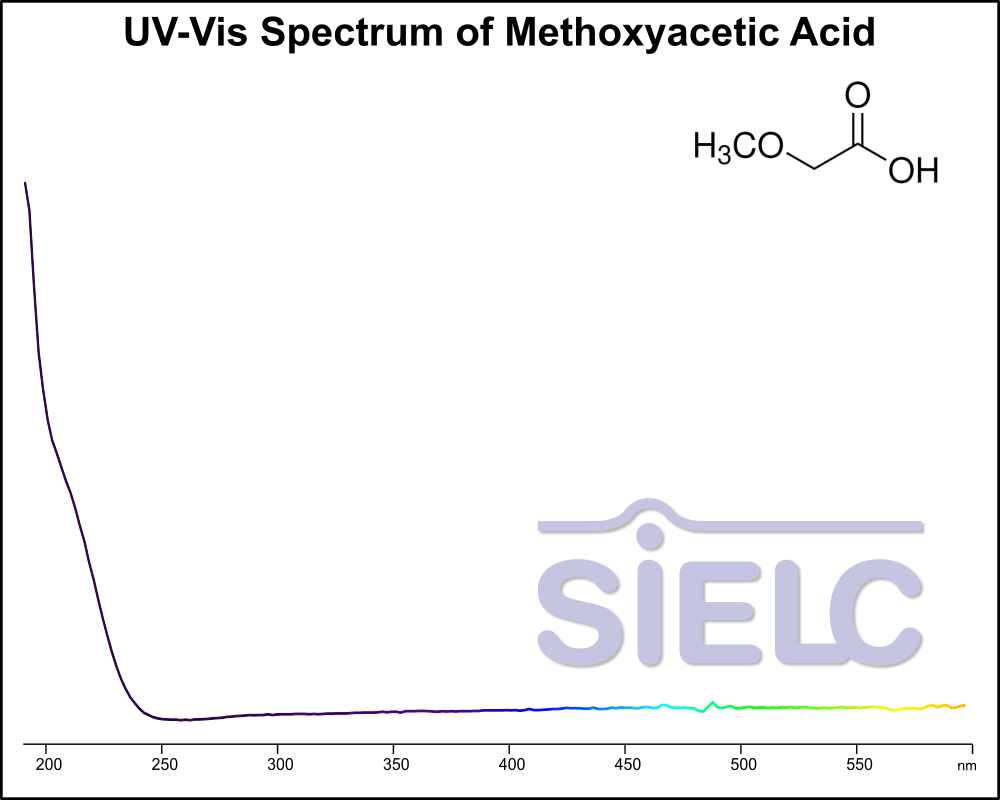 Methoxyacetic acid can be analyzed by this reverse phase (RP) HPLC method with simple conditions. The mobile phase contains an acetonitrile (MeCN), water, and phosphoric acid. For Mass-Spec (MS) compatible applications the phosphoric acid needs to be replaced with formic acid. Smaller 3 µm particles columns available for fast UPLC applications. This liquid chromatography method is scalable and can be used for isolation impurities in preparative separation. It also suitable for pharmacokinetics.