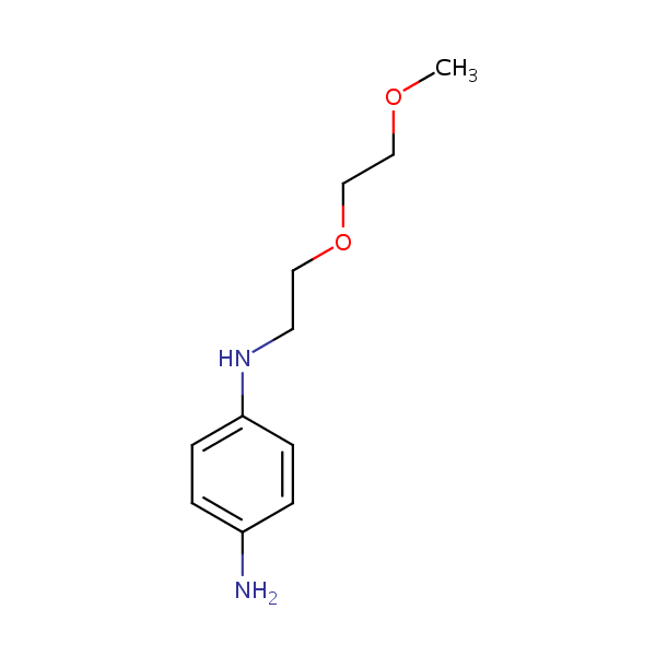 N-(2-(2-Methoxyethoxy)ethyl)benzene-1,4-diamine can be analyzed by this reverse phase (RP) HPLC method with simple conditions. The mobile phase contains an acetonitrile (MeCN), water, and phosphoric acid. For Mass-Spec (MS) compatible applications the phosphoric acid needs to be replaced with formic acid. Smaller 3 µm particles columns available for fast UPLC applications. This liquid chromatography method is scalable and can be used for isolation impurities in preparative separation. It also suitable for pharmacokinetics.