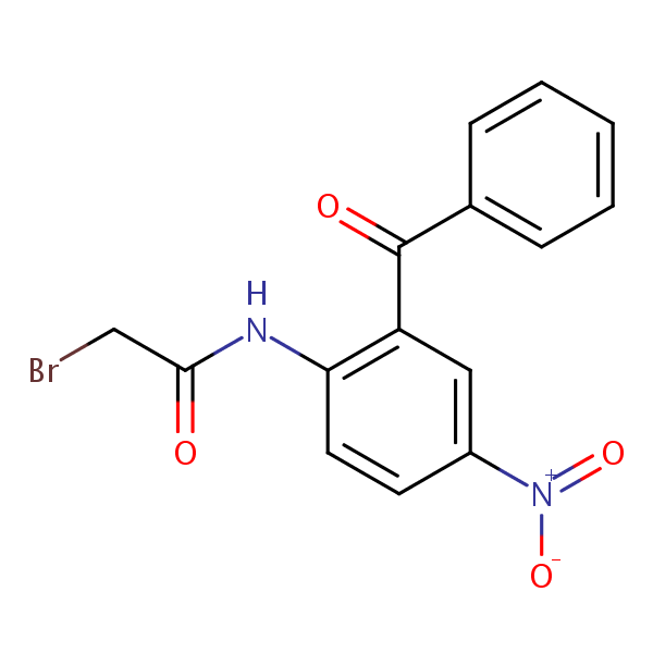 N-(2-Benzoyl-4-nitrophenyl)-2-bromoacetamide can be analyzed by this reverse phase (RP) HPLC method with simple conditions. The mobile phase contains an acetonitrile (MeCN), water, and phosphoric acid. For Mass-Spec (MS) compatible applications the phosphoric acid needs to be replaced with formic acid. Smaller 3 µm particles columns available for fast UPLC applications. This liquid chromatography method is scalable and can be used for isolation impurities in preparative separation. It also suitable for pharmacokinetics.