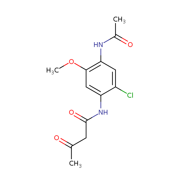 N-(4-(Acetylamino)-2-chloro-5-methoxyphenyl)-3-oxobutyramide can be analyzed by this reverse phase (RP) HPLC method with simple conditions. The mobile phase contains an acetonitrile (MeCN), water, and phosphoric acid. For Mass-Spec (MS) compatible applications the phosphoric acid needs to be replaced with formic acid. Smaller 3 µm particles columns available for fast UPLC applications. This liquid chromatography method is scalable and can be used for isolation impurities in preparative separation. It also suitable for pharmacokinetics.