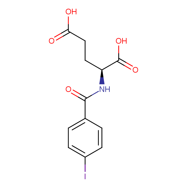 N-(4-Iodobenzoyl)-L-glutamic acid can be analyzed by this reverse phase (RP) HPLC method with simple conditions. The mobile phase contains an acetonitrile (MeCN), water, and phosphoric acid. For Mass-Spec (MS) compatible applications the phosphoric acid needs to be replaced with formic acid. Smaller 3 µm particles columns available for fast UPLC applications. This liquid chromatography method is scalable and can be used for isolation impurities in preparative separation. It also suitable for pharmacokinetics.