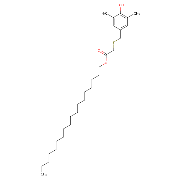 Octadecyl (((4-hydroxy-3,5-dimethylphenyl)methyl)thio)acetate can be analyzed by this reverse phase (RP) HPLC method with simple conditions. The mobile phase contains an acetonitrile (MeCN), water, and phosphoric acid. For Mass-Spec (MS) compatible applications the phosphoric acid needs to be replaced with formic acid. Smaller 3 µm particles columns available for fast UPLC applications. This liquid chromatography method is scalable and can be used for isolation impurities in preparative separation. It also suitable for pharmacokinetics.