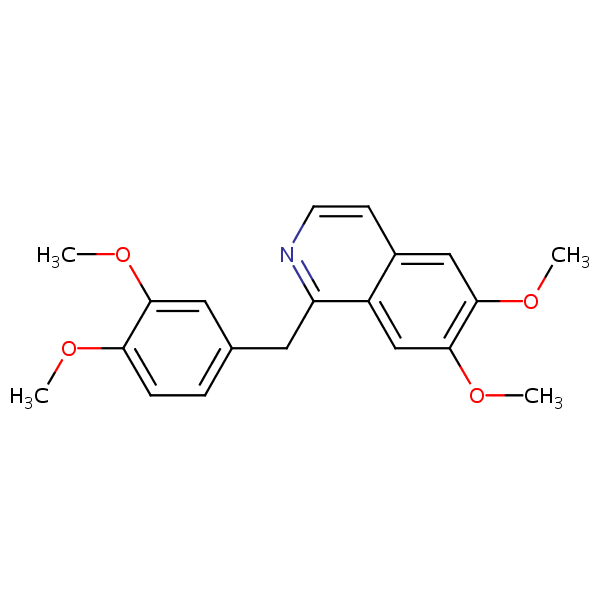 Papaverine is an opium alkaloid antispasmodic drug with the chemical formula C20H21NO4. It is typically used to treat erectile dysfunction, improve blood flow, and relax smooth muscles.