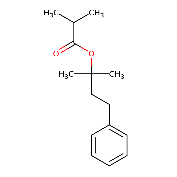 Propanoic acid, 2-methyl-, 1,1-dimethyl-3-phenylpropyl ester can be analyzed by this reverse phase (RP) HPLC method with simple conditions. The mobile phase contains an acetonitrile (MeCN), water, and phosphoric acid. For Mass-Spec (MS) compatible applications the phosphoric acid needs to be replaced with formic acid. Smaller 3 µm particles columns available for fast UPLC applications. This liquid chromatography method is scalable and can be used for isolation impurities in preparative separation. It also suitable for pharmacokinetics.