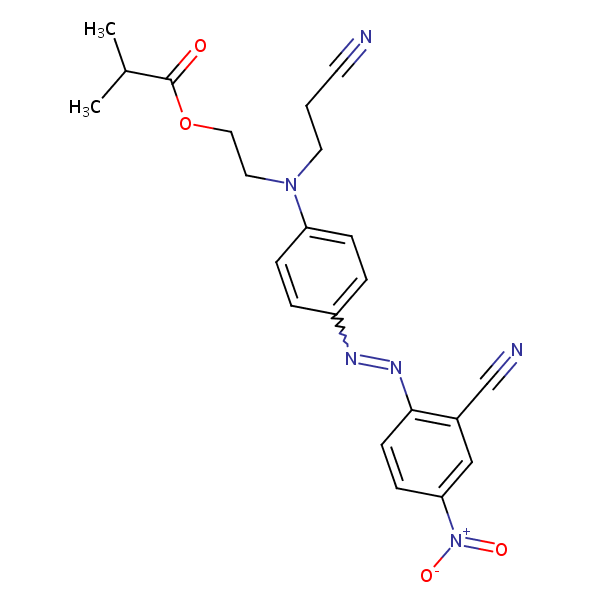 Propanoic acid, 2-methyl-, 2-[(2-cyanoethyl)[4-[(2-cyano-4-nitrophenyl)azo]phenyl]amino]ethyl ester can be analyzed by this reverse phase (RP) HPLC method with simple conditions. The mobile phase contains an acetonitrile (MeCN), water, and phosphoric acid. For Mass-Spec (MS) compatible applications the phosphoric acid needs to be replaced with formic acid. Smaller 3 µm particles columns available for fast UPLC applications. This liquid chromatography method is scalable and can be used for isolation impurities in preparative separation. It also suitable for pharmacokinetics.