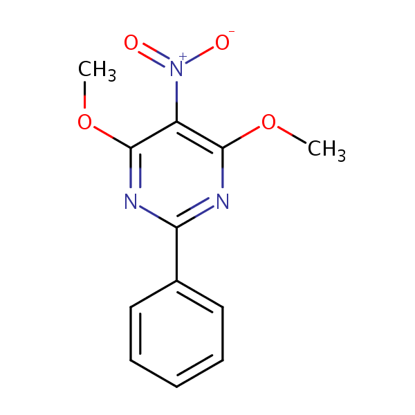 Pyrimidine, 4,6-dimethoxy-5-nitro-2-phenyl- can be analyzed by this reverse phase (RP) HPLC method with simple conditions. The mobile phase contains an acetonitrile (MeCN), water, and phosphoric acid. For Mass-Spec (MS) compatible applications the phosphoric acid needs to be replaced with formic acid. Smaller 3 µm particles columns available for fast UPLC applications. This liquid chromatography method is scalable and can be used for isolation impurities in preparative separation. It also suitable for pharmacokinetics.