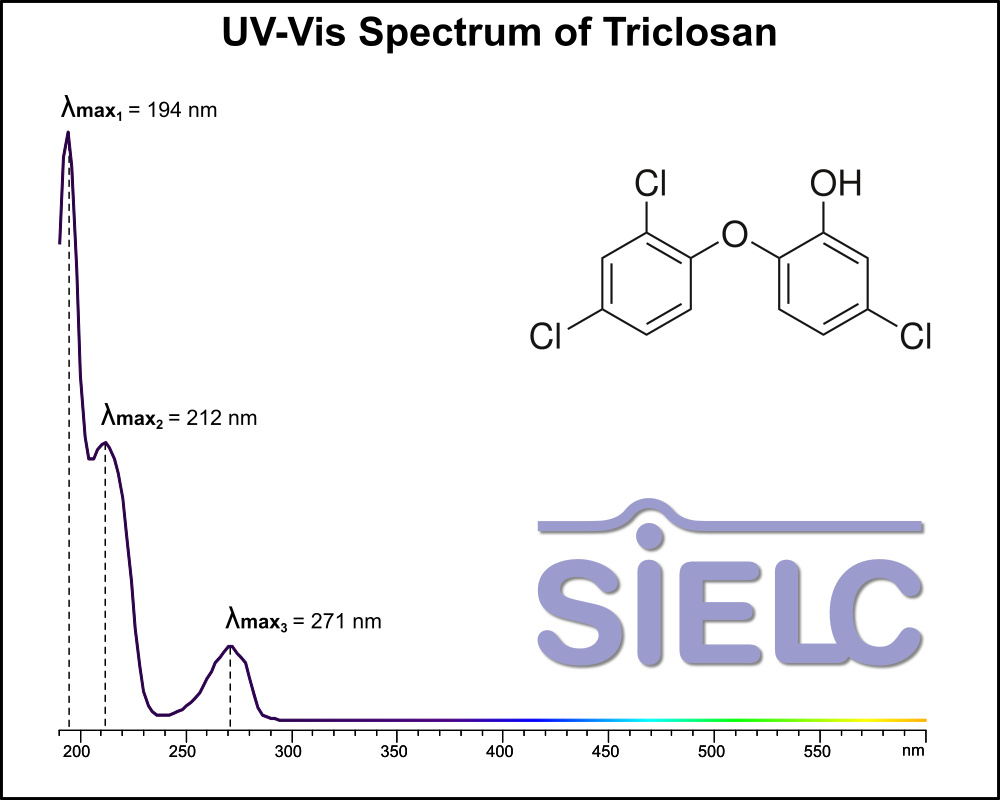 Triclosan can be analyzed by this reverse phase (RP) HPLC method with simple conditions. The mobile phase contains an acetonitrile (MeCN), water, and phosphoric acid. For Mass-Spec (MS) compatible applications the phosphoric acid needs to be replaced with formic acid. Smaller 3 µm particles columns available for fast UPLC applications. This liquid chromatography method is scalable and can be used for isolation impurities in preparative separation. It also suitable for pharmacokinetics.