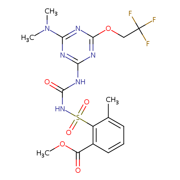 Triflusulfuron-methyl can be analyzed by this reverse phase (RP) HPLC method with simple conditions. The mobile phase contains an acetonitrile (MeCN), water, and phosphoric acid. For Mass-Spec (MS) compatible applications the phosphoric acid needs to be replaced with formic acid. Smaller 3 µm particles columns available for fast UPLC applications. This liquid chromatography method is scalable and can be used for isolation impurities in preparative separation. It also suitable for pharmacokinetics.