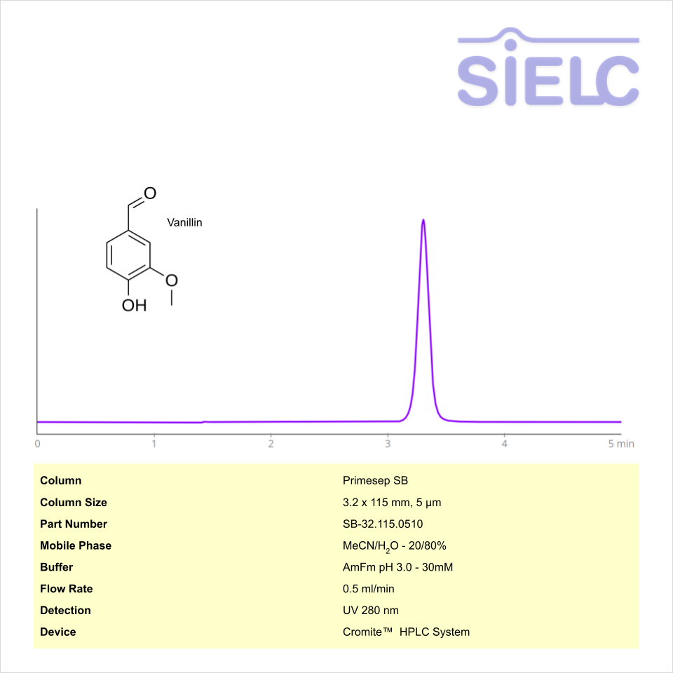 HPLC Method for Analysis of Vanillin on Primesep SB Column on Cromite™